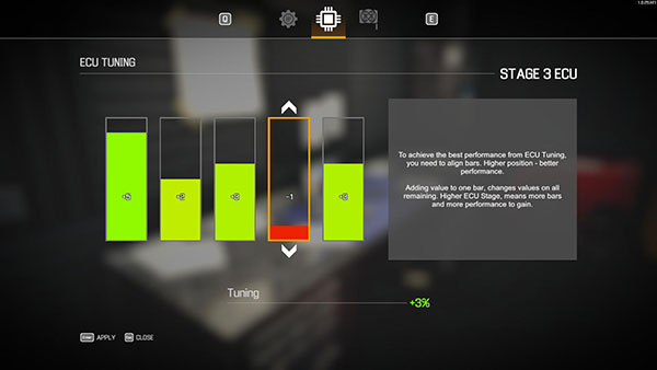 تحتوي كل سيارة الآن على فهرس " تصنيف السحب " الذي يعينها لفئة سباق معينة. تذكر أن أي تغيير في ضبط السيارة يتطلب لاحقًا التحقق منه على Dyno لحساب الفهرس الجديد.