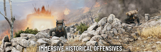 يضعك وضع اللعبة الهجومية الجديد في منتصف الهجمات التاريخية الرئيسية على الجبهة الإيطالية. قم بقيادة الهجوم عبر المناظر الطبيعية الإيطالية المذهلة وأنت تختار طريقك إلى النصر - قم بقطع المسارات من خلال الأسلاك الشائكة ، أو قم بإحاطة أعدائك باتباع الممرات الجبلية ، أو قم بقذيفة هاون لتفجير طريق من خلالها. شكل ساحة معركة ديناميكية من خلال وضع أكياس الرمل والأسلاك ووضع صناديق الذخيرة ونشر مناظير الخنادق أو دروع القناصة والمزيد.